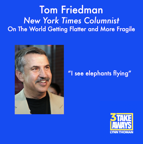 Tom Friedman: On the World Getting Flatter and More Fragile, and Elephants Flying