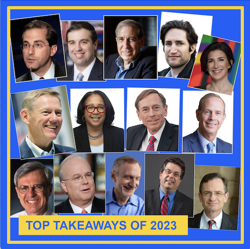 Can you guess which takeaway is from each guest before we tell you who it is? The guests include former Director of the CIA, former Vice Chairman of the Joint Chiefs of Staff, CEO of Chevron, former Foreign Minister of Israel and other amazing guests.